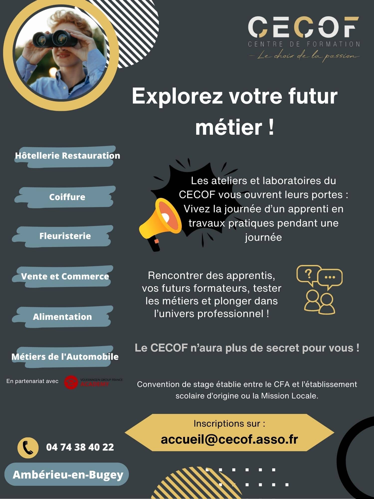 Venez rencontrer les équipes du CECOF, visiter les ateliers, les laboratoires et l’internat et échanger sur la rentrée prochaine.
